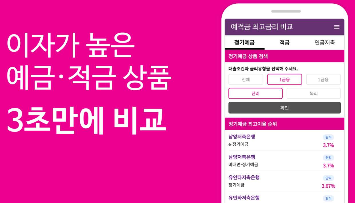 예적금 최고금리 비교 - 이자 높은 적금·연금상품 비교 어플 다운로드 [ 안드로이드, 아이폰]